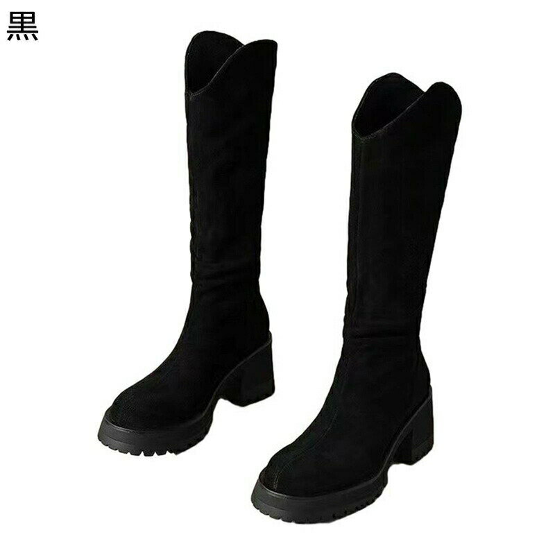 ニーハイブーツ ロングブーツ ハイヒール スエード 粗いかかと 厚底 無地 シンプル 膝下丈 秋冬 ・・・