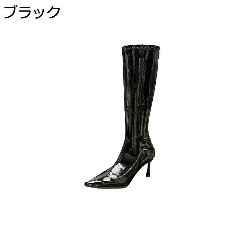 エナメル ロングブーツ ピンヒール ポインテッドトゥ 長ブーツ レディース モード系 美脚 モード系・・・