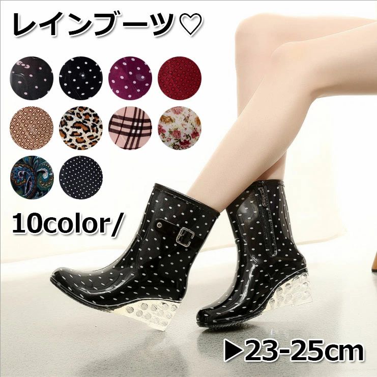 レインブーツ レディース ミドル丈 雨靴 レインシューズ 滑り止め 梅雨 可愛い 雨の日 通勤 通学・・・
