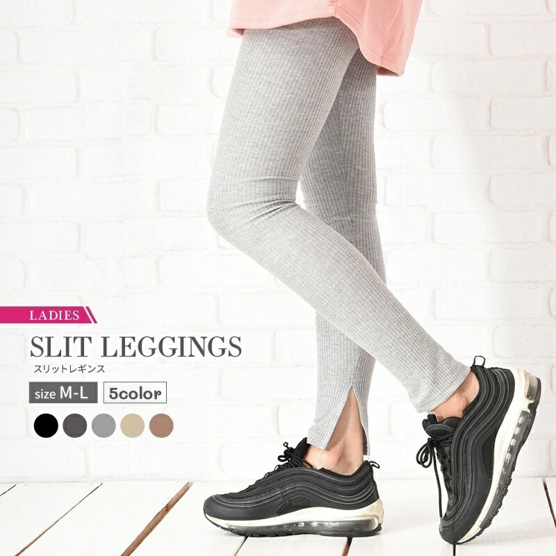 送料無料 リブレギンス スリット レギンスパンツ レギパン 10分丈 レディース ボトムス ウエスト・・・