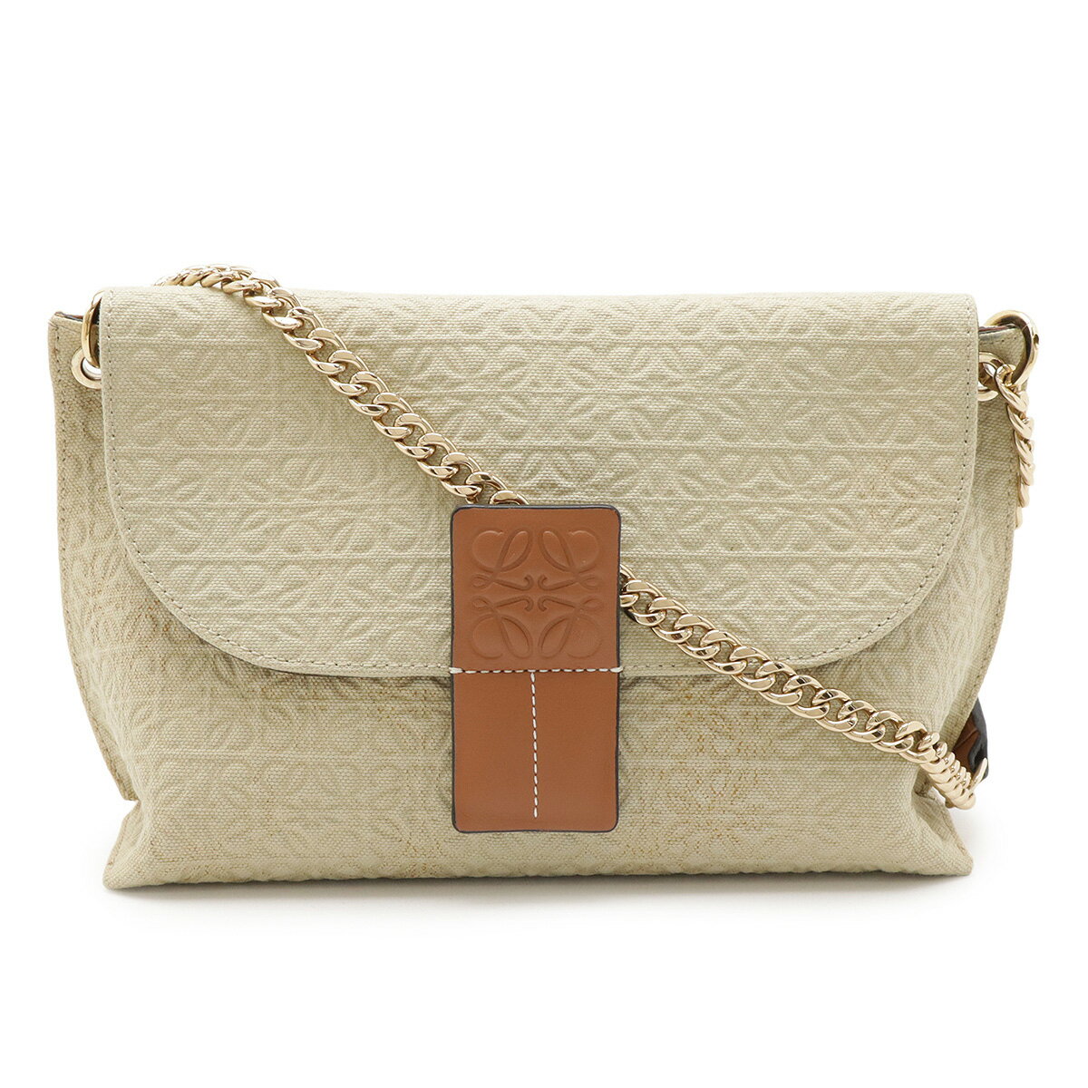 LOEWE ロエベ アナグラムキャンバスショルダーバッグ ベージュ ブラック 【中古】 ITAHT0・・・