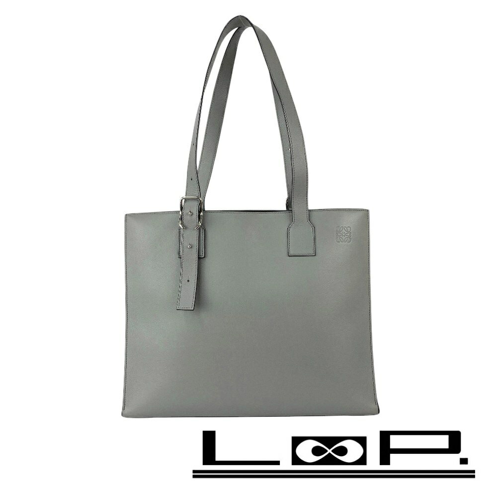 ロエベ ■美品■ ホリゾンタル トート バッグ カバン 鞄 レザー グレー 【430534】5 【中・・・