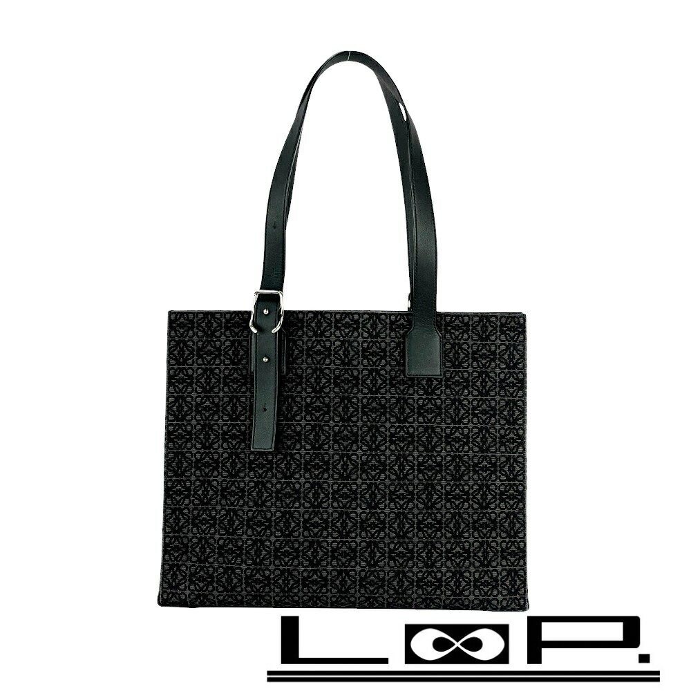 ロエベ ■美品■ バックル ホリゾンタル トートバッグ ジャガード レザー ブラック B69296X・・・