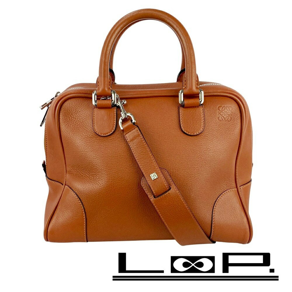 ロエベ ■美品■ アマソナ 75 ミディアム 2WAY ハンド ショルダー バッグ レザー ブラウン・・・