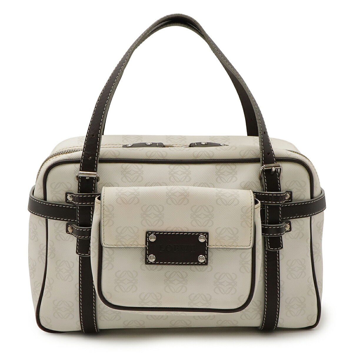 LOEWE ロエベ ロゴ アナグラム ハンドバッグ ポーチ付 PVC レザー ホワイト 白 ダークブ・・・