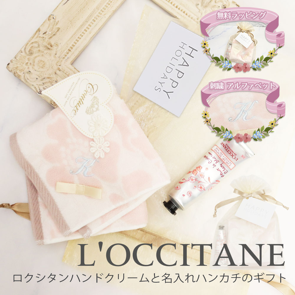 名入れ 刺繍 ロクシタンハンドクリームと名入れハンカチのギフト ロクシタン ハンドクリーム ハンカチ・・・