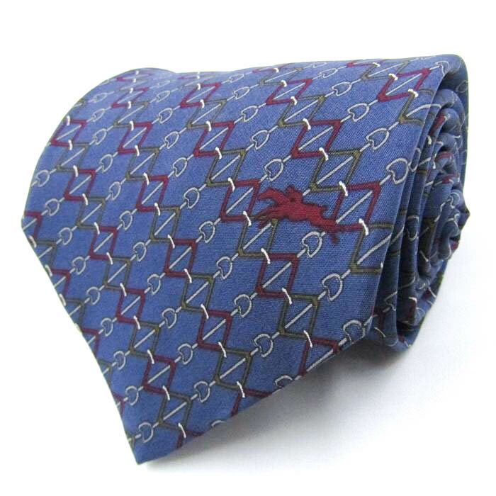 Longchamp ロンシャン ブランド ネクタイ シルク 総柄 メンズ ネイビー 【中古】
