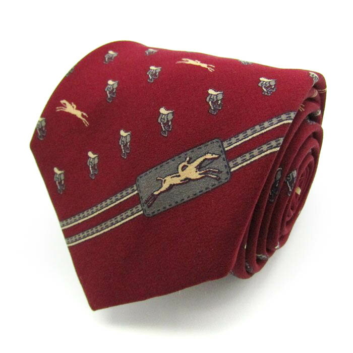 Longchamp ロンシャン ブランド ネクタイ 総柄 シルク イタリア製 PO メンズ レッド ・・・