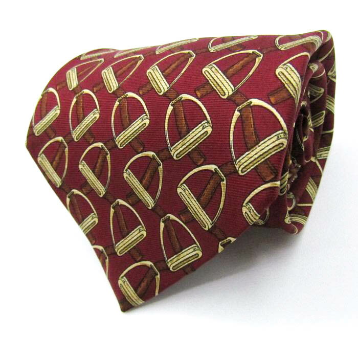 ロンシャン ブランド ネクタイ シルク 総柄 伊製生地 メンズ レッド Longchamp 【中古】