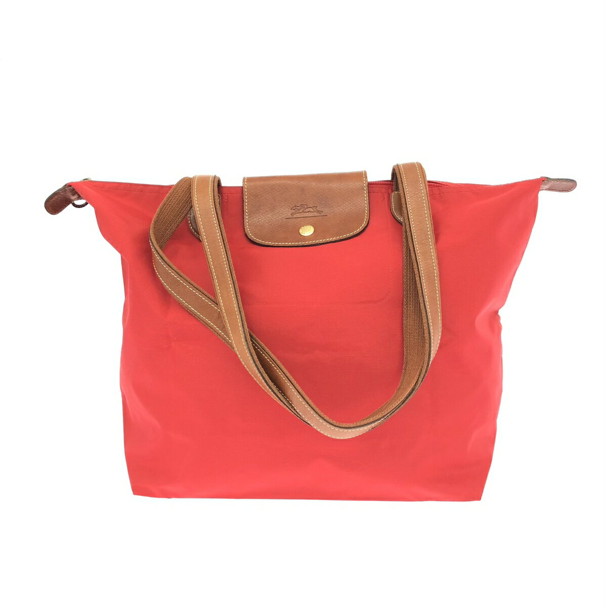 LONGCHAMP ロンシャン トートバッグ ナイロン×レザー レッド レディース【中古】