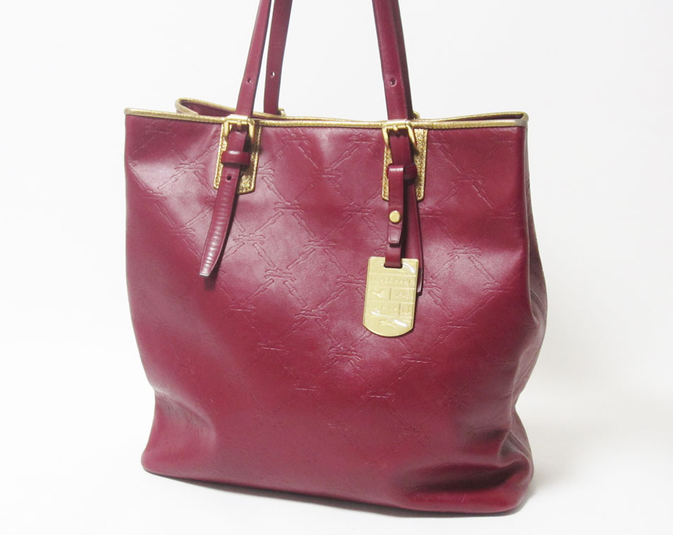 LONGCHAMP ロンシャン トートバッグ レザー レッド ゴールド ポーチなし 美品【中古】