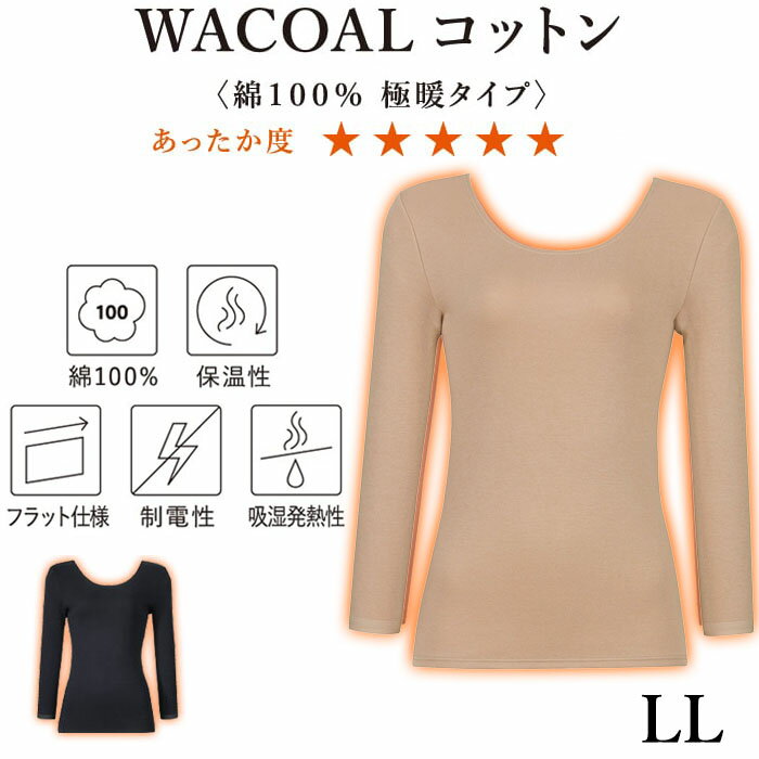 極暖 裏起毛ワコール Wacoal スゴ衣 綿100極暖 LLサイズ レディース 8分袖 ニット あ・・・