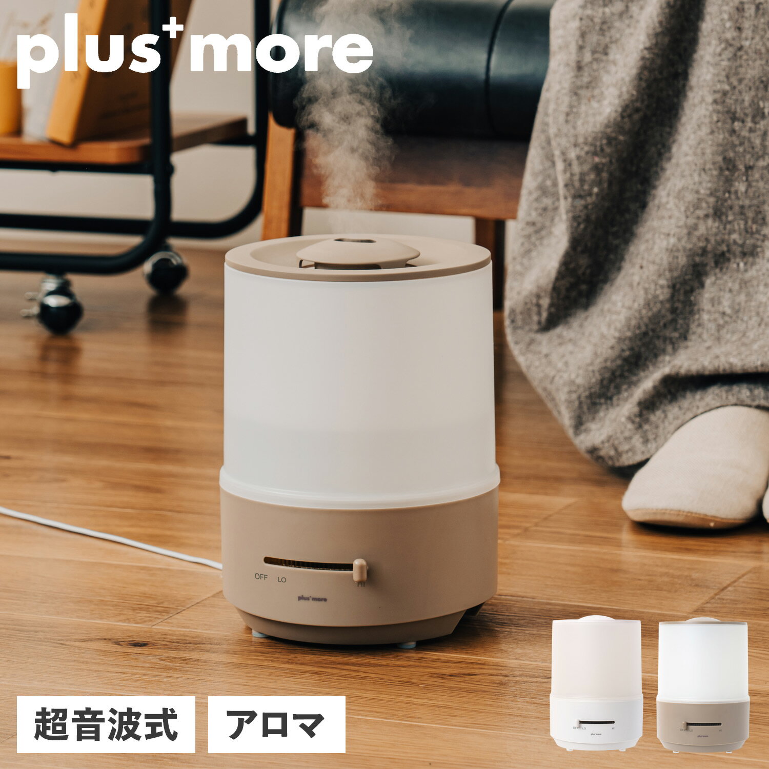 plusmore プラスモア 加湿器 超音波 卓上 アロマ 上部給水 ライト機能付き 保湿 乾燥 小・・・