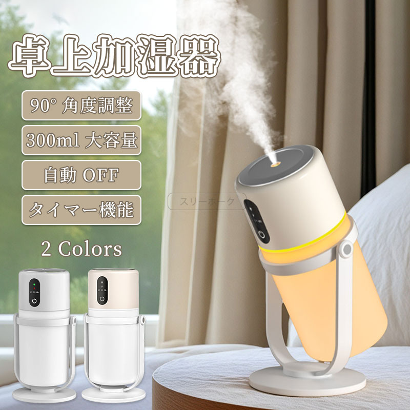 卓上 加湿器 小型 ダブルノズル 超音波式 加湿器 USB充電式 コードレス 加湿器 角度調整 アロ・・・