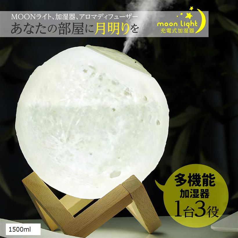 加湿器 超音波式 充電式 LED アロマディフューザー 卓上 1.5L コードレス 1500ml