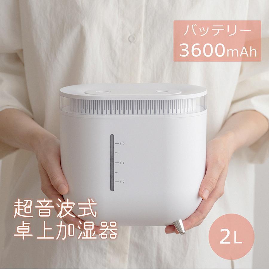 在庫処分 加湿器 超音波式 小型 卓上 コードレス 大容量2L 上部給水 LEDライト USB 2段・・・