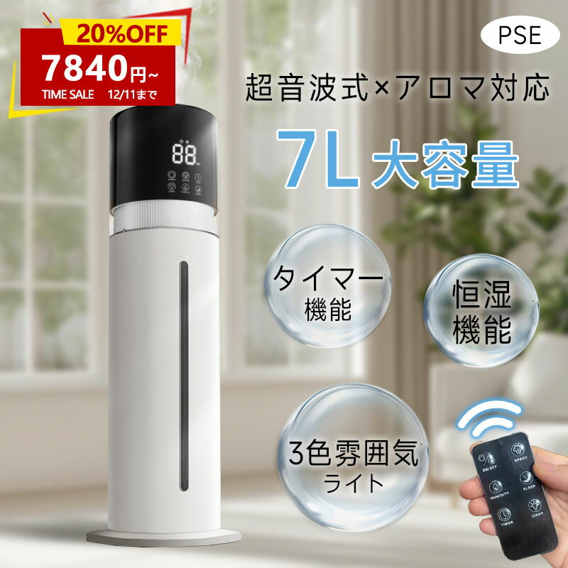 20%OFF→7840円~加湿器 7L 大容量 超音波式 静音 大霧量 自動恒湿 リモコン付き 上部・・・