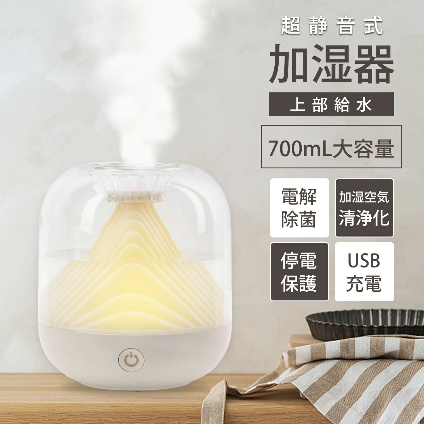 加湿器 超音波加湿器 小型 静音 大容量 900ml 7色LEDライト USB Type C 卓上 ・・・