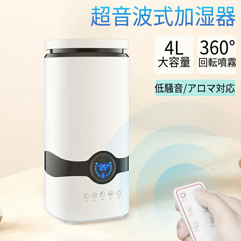【2025新品】加湿器 大型4L容量 超音波式 加湿機 卓上 空気清浄 おしゃれ 自動湿度調節 空焚・・・