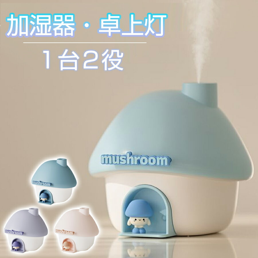 加湿器 卓上 超音波式 可愛い キノコの形 持ち運び便利 軽量 USB充電式加湿器 7色ランプ 暖光・・・