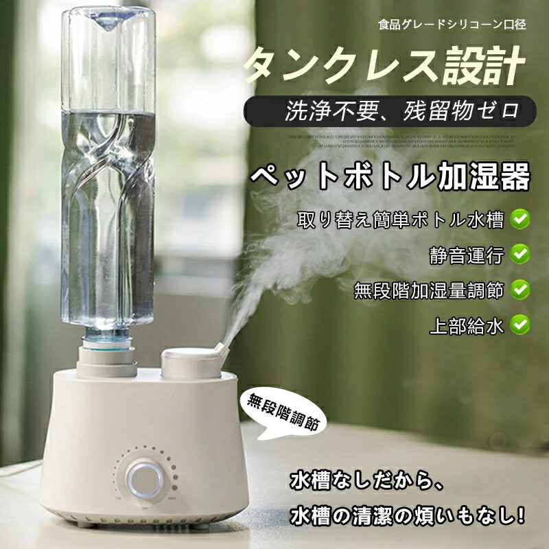 加湿器 卓上加湿器 ペットボトル 小型 超音波式加湿器 無水槽 無段階加湿量調節 上から給水 節電 ・・・