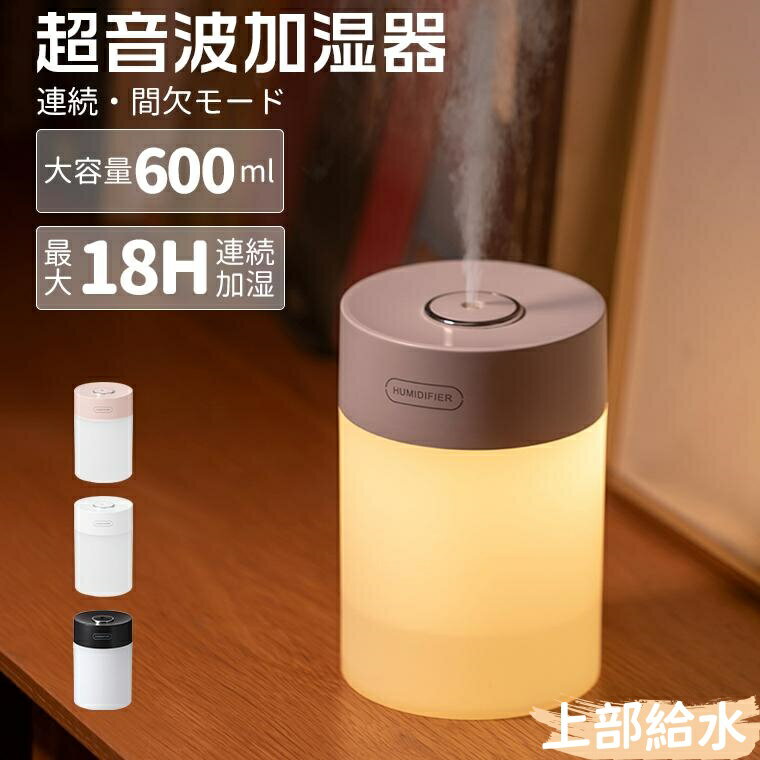 加湿器 超音波式 卓上 小型 卓上加湿器 600ml 大容量 静音 ミニ 上部給水 超細微ミスト 空・・・