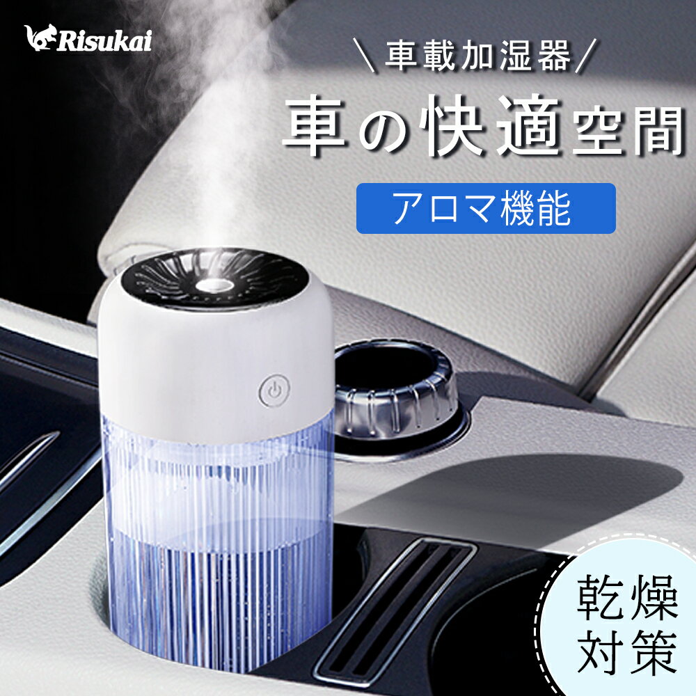 【車の中に快適湿度を】車載加湿器 小型 USB給電 静音 大容量 超音波式加湿器 乾燥対策 車内快適・・・