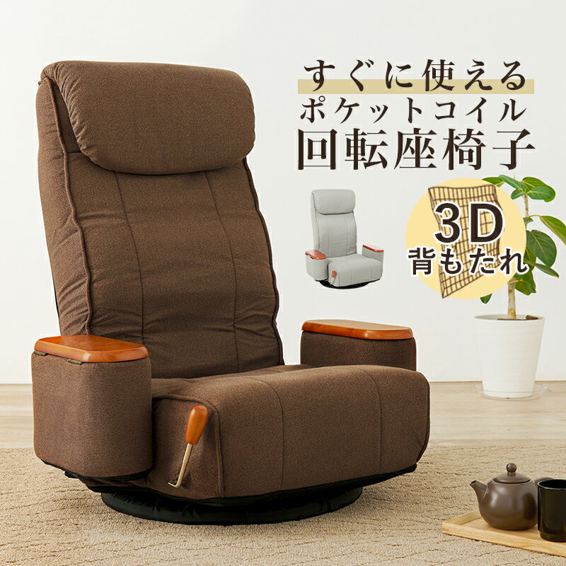高座椅子 ハイバックタイプ 回転 昇降式 座面高42~48cm ジネシー ( 座椅子 無段階リクライ・・・