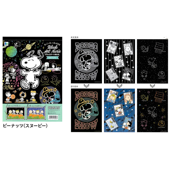 ショウワノート ブラックアートぬりえ ピーナッツ(スヌーピー) 黒の上にキラキラ映える色彩が表現でき・・・