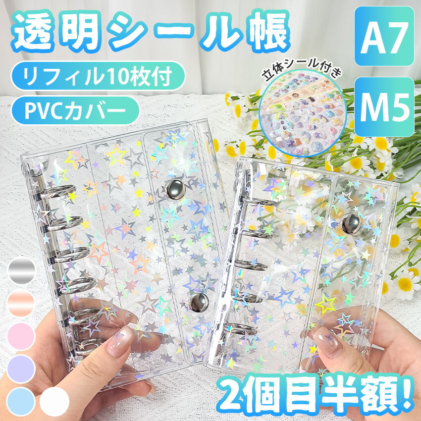 【2個目半額!】 シール帳 バインダー 透明 ぷくぷく クリア M5 A7 台紙 リフィル 6穴 5・・・