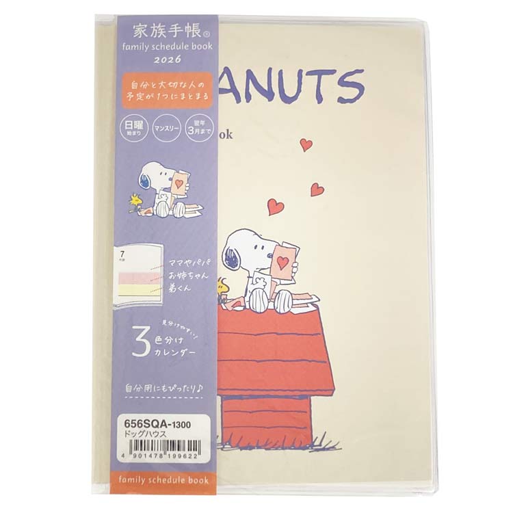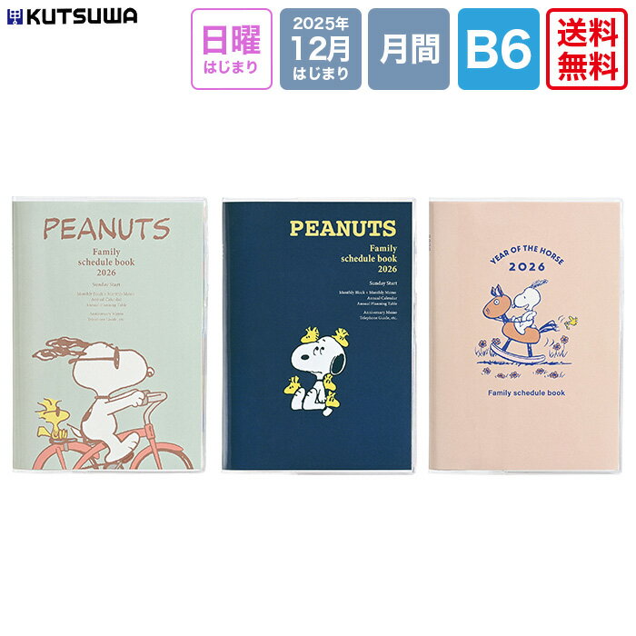 スヌーピー 手帳 2026年スケジュール帳 2025年12月始まり・家族手帳 A6 月間 ドッグハウ・・・