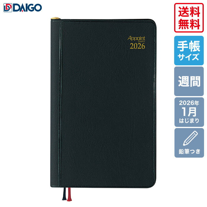 【送料無料 正規販売店】ダイゴー 2026Appoint 見開き1週間 鉛筆付 E1003 ブラック・・・