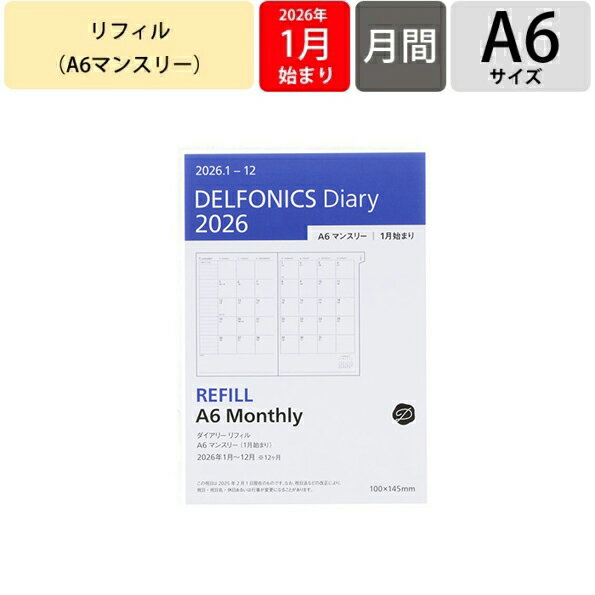 DELFONICS デルフォニックス 2026 1月始まり 手帳 月間式(ブロック) A6 ダイアリ・・・