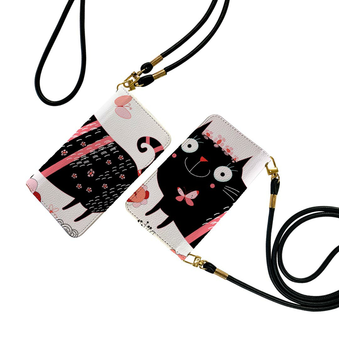 スマホケース 手帳型 全機種対応 【 黒猫と牡丹 】 ねこ 花 和柄 モダン 本革 レザー 純国産 ・・・