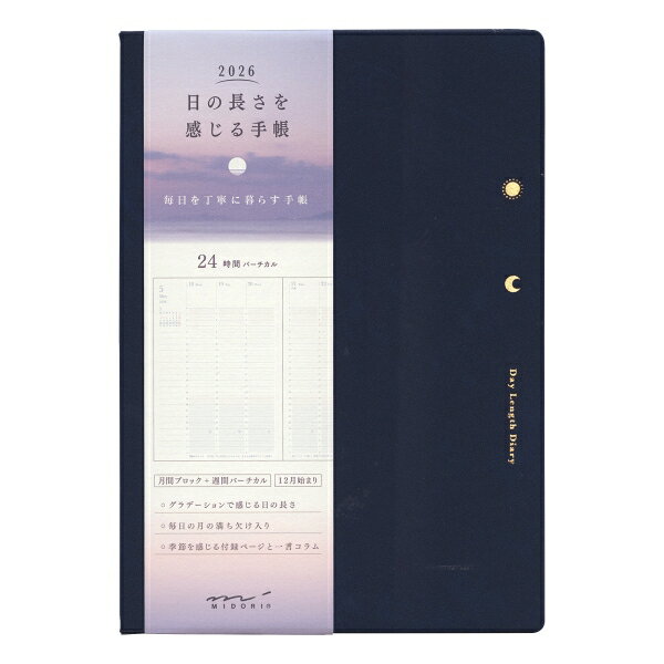 2026年 手帳 B6 日の長さを感じる手帳 週間見開きバーチカル【紺】