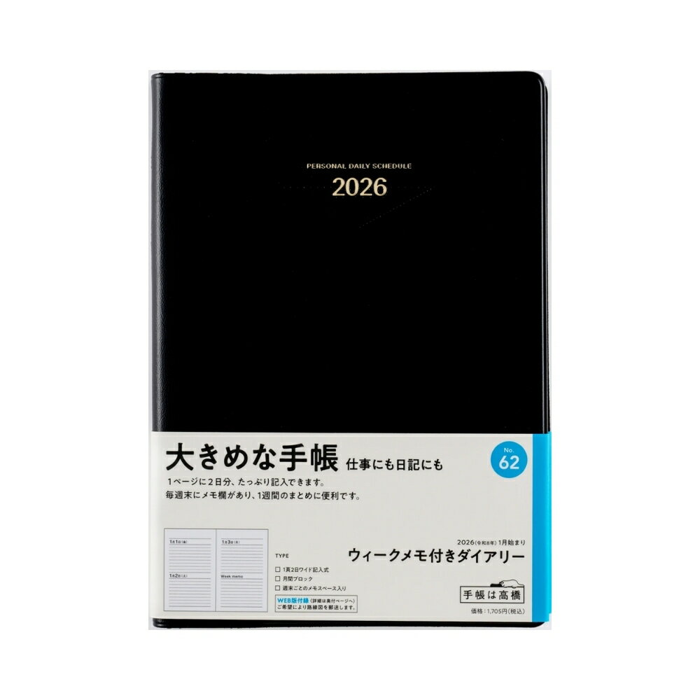 【メール便対応】31062/No.62 高橋書店 2026年版 1月始まり 月曜始まり ウィークメモ・・・