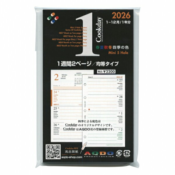 2026年 ミニ5穴サイズ 1週間2ページ/均等タイプ【1】リフィル Cookday