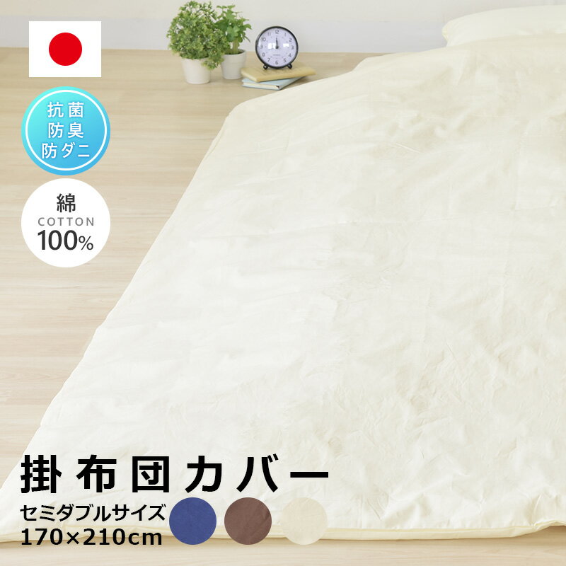 掛けカバー 掛け布団カバー セミダブル スーパーロング 綿100% 抗菌防臭 日本製 無地カラー お・・・