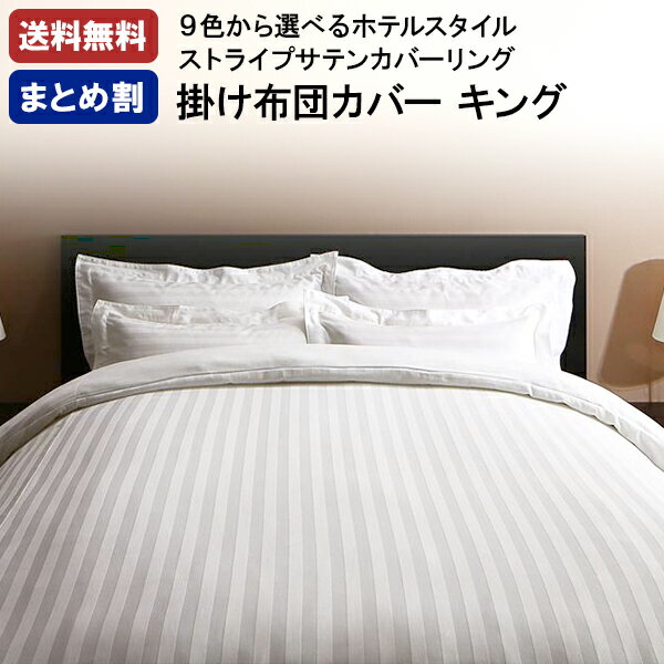【割引クーポン】 布団カバー キング おしゃれ モノトーン 北欧 サテン 夏 ホテル ストライプ 掛・・・