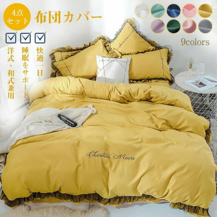 布団カバー セット 4点セット ダブル キングサイズ シーツカバー 洋式・和式兼用 掛け布団カバー ・・・