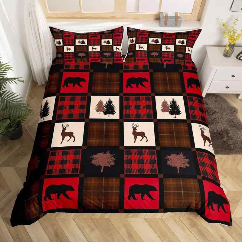 寝具 クリスマス トナカイ デジタルプリント 3点セット レッド ベッドシーツ 掛け布団カバー 北欧・・・