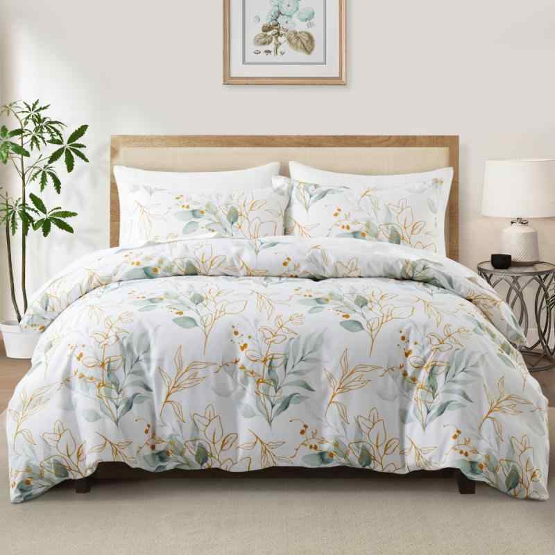 掛け布団カバーセット 金縁花柄 ボタニカルデザイン 寝具 3点セット 北欧風 ポリエステル ピーチス・・・
