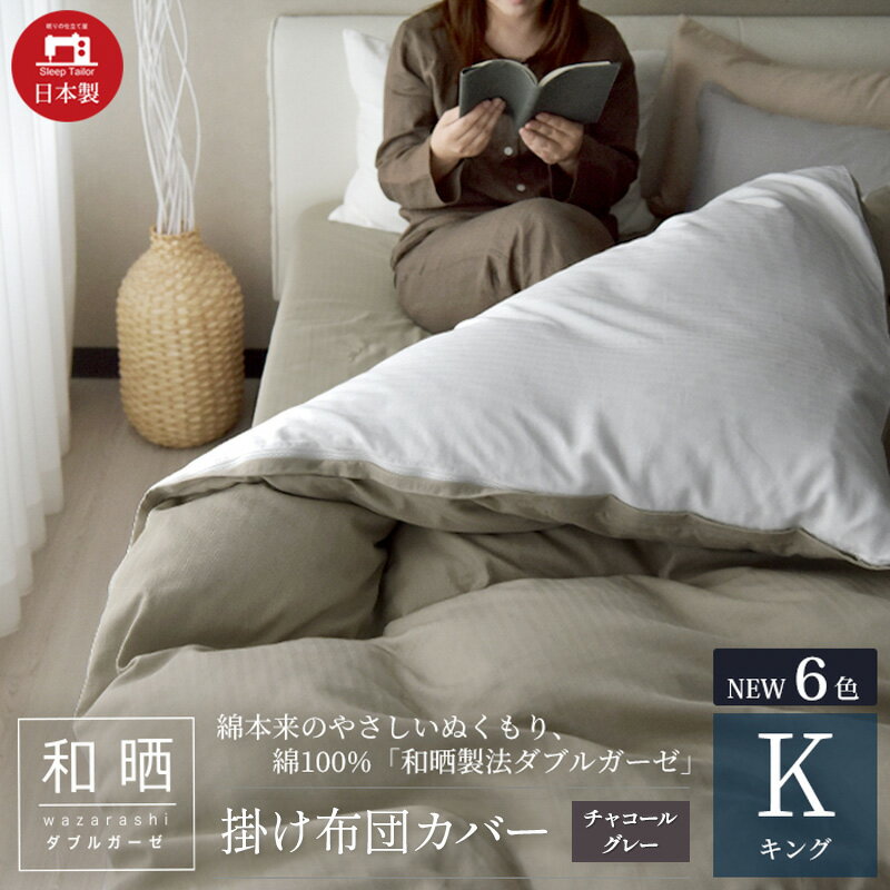 【ふるさと納税】綿100% 和晒製法ダブルガーゼ 掛け布団カバー キングサイズ チャコールグレー「和・・・