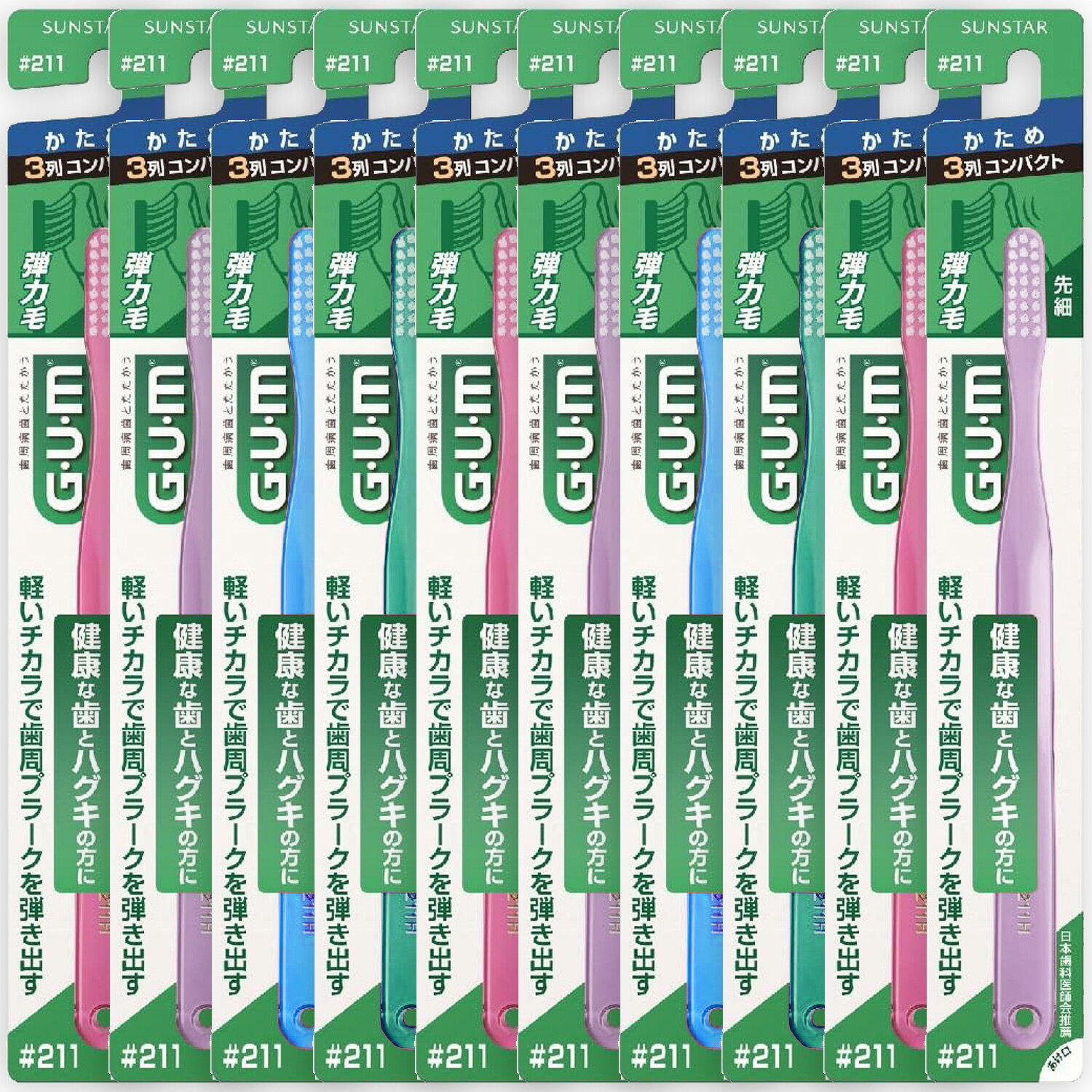 【10個まとめ買い】(GUM)ガム デンタルブラシ#211[3列コンパクト・かため](アソートカラー・・・