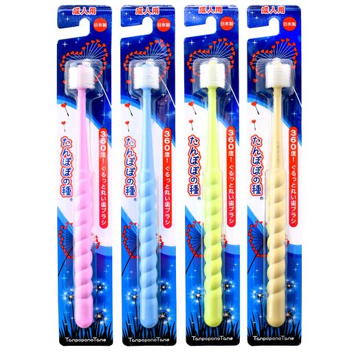 たんぽぽの種360度ぐるっと丸い歯ブラシ極細毛(成人用4本セット)
