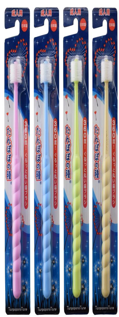 たんぽぽの種 360度ぐるっと丸い歯ブラシ 極細毛 (成人用 4本セット 【2022年版新色】)