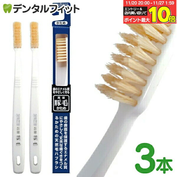 エビス 豚毛歯ブラシ かため 3本セット 歯のエナメル質をやさしく守る高級豚毛歯ブラシ EBiSU ・・・