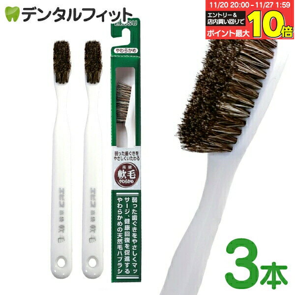 エビス 軟毛歯ブラシ やわらかめ 3本セット 弱った歯ぐきをやさしくいたわる高級軟毛歯ブラシ EBi・・・