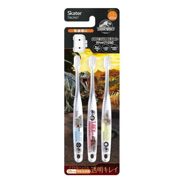 TBCR5T ジュラシックワールド スケーター 子供用 歯ブラシ 3本セット 園児用 クリア 歯ブラ・・・
