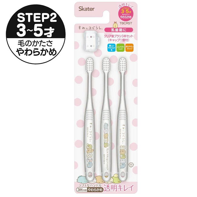 すみっコぐらし 歯ブラシ クリア 子供用 キャップ付 3本セット サンエックス キャラクター スケー・・・